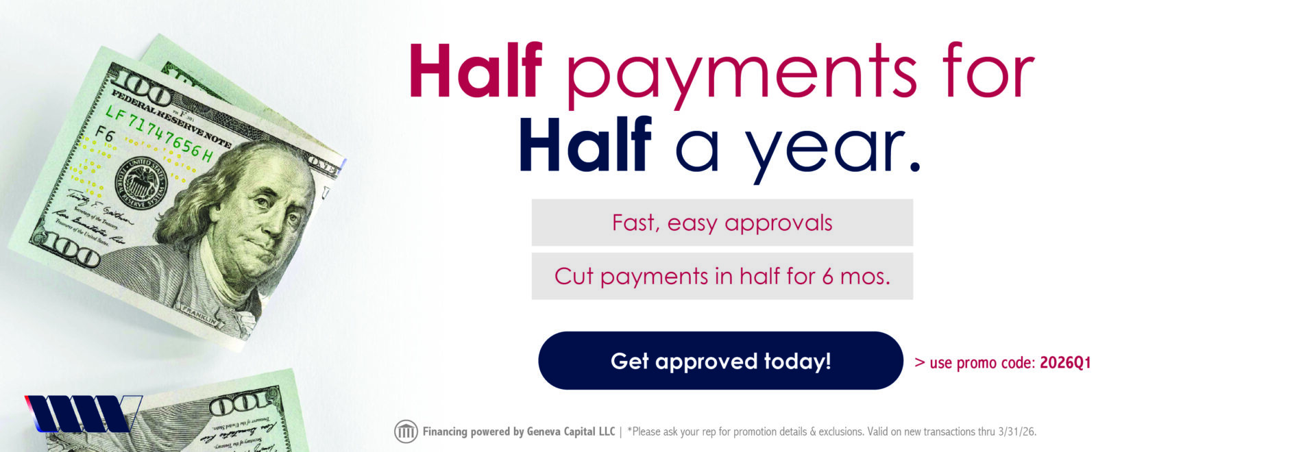 There’s always an interim period between getting new equipment installed and seeing the ROI. To make your equipment purchase as simple and attainable as possible, we’re offering discounted payments for the first 6 months of your term! By the time you start making regular payments in month 7, your new equipment should be paying for itself!