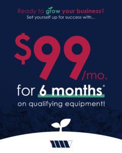 With low introductory payments for 6 months, you can make the new equipment purchase your business needs to stay ahead of the competition and ahead of your finances. Set yourself up for smart growth with 6 months at just $99 on any qualifying new equipment purchase!*