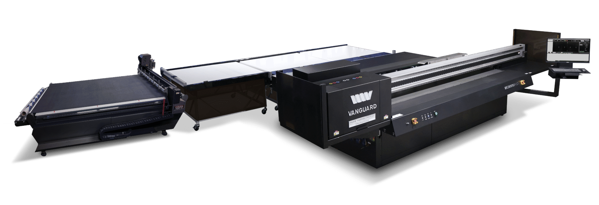 One way to maximize a printer’s throughput potential is to automate media handling. Vanguard Digital and Colex have collaborated to provide a fully automated print-to-cut workflow to simplify rigid print production for the Sign & Display and Packaging market to reduce turnaround time for clients and brands. The Harpeth automated print-to-cut system is comprised of the VK3220T-HS UV-LED flatbed printer from Vanguard, and the in-line transport system partnered with the Vanguard edition of the Sharpcut digital cutter from Colex. With the ability to automate the workflow between print and cutting, Print Service Providers can reduce cost and reduce media handling times for greater productivity. In today’s competitive landscape, efficiency is the key to success in any print business, as well as with clients and brands.