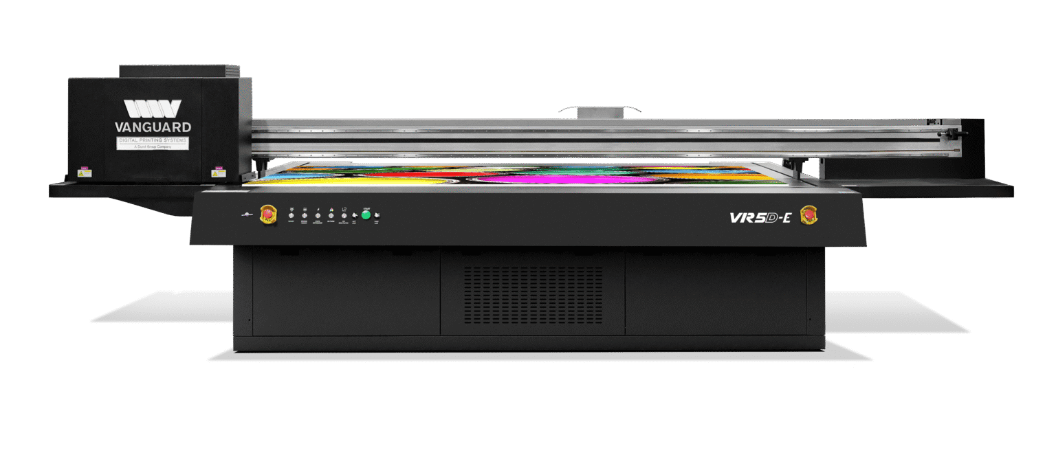 The Vanguard Digital Printing Systems VR5D-E flatbed UV-LED printer combines revolutionary technology, industry leading quality and outstanding speed to out perform in the most demanding environments.